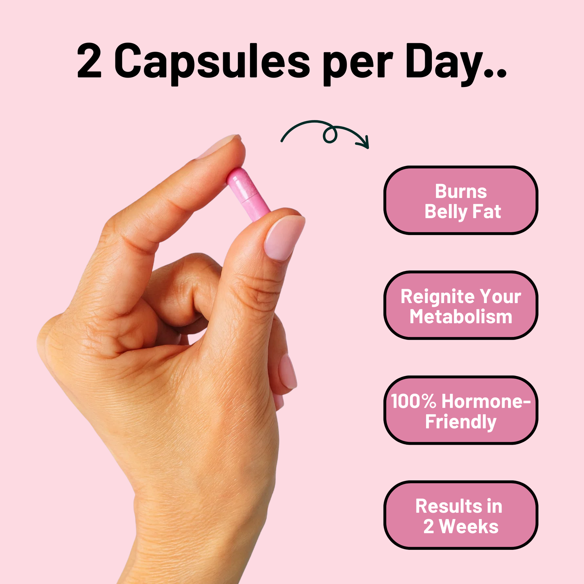 “Ik raad aan om de capsules dagelijks minimaal 90 dagen in te nemen om je hormonen in balans te brengen en blijvend gewicht te verliezen, vooral rond de buik.”